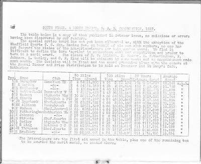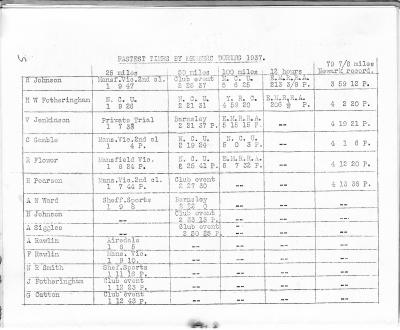 Records – One being the 100 on the Trike with a time of 5h 8m 37s. He won the Trike Bar Competition over 50, 100, 12hr with an average speed of 19.049mph. He also set up new records for the Trike over 25, 50, 100, 12hr loving further forward to my time of joining 1951. The club was still run with great passion by the older members. Marlow Lenton joined 1923, lived in Sheffield was Chairman for many years and despite the distance always took his seat to Chair the Committee. In those days we had six Vice Presidents. This I believe because so many worked so hard for the Club. At one AGM, there was a vote for VP and I remember the ones that lost walked out in disgust. That how keen members were back then.
